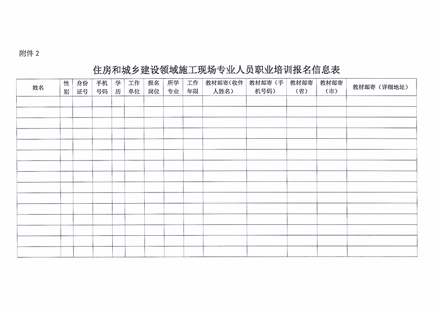 附件2:住房和城乡建设领域施工现场专业人员职业培训报名信息表.docx