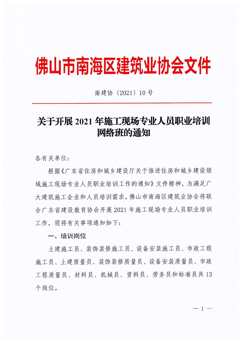 关于开展2021年施工现场专业人员职业培训网络班的通知(南建协〔2021〕10号).pdf