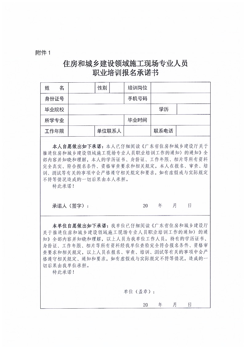 附件1:住房和城乡建设领域施工现场专业人员职业培训报名承诺书.docx