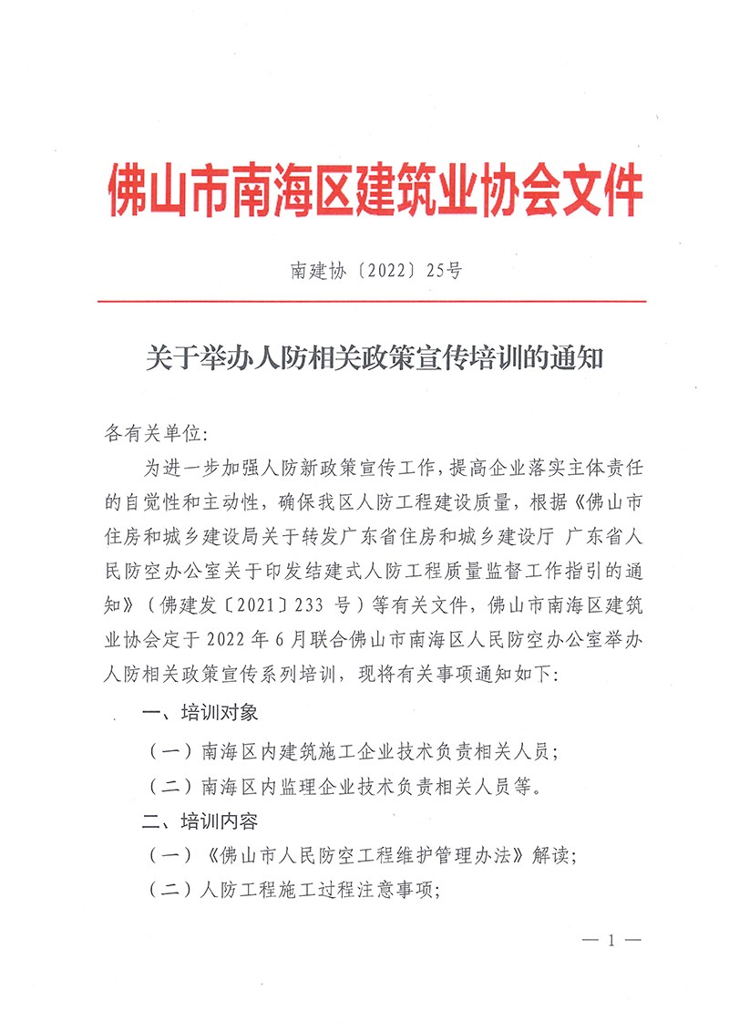 关于举办人防相关政策宣传培训的通知(南建协〔2022〕25号)