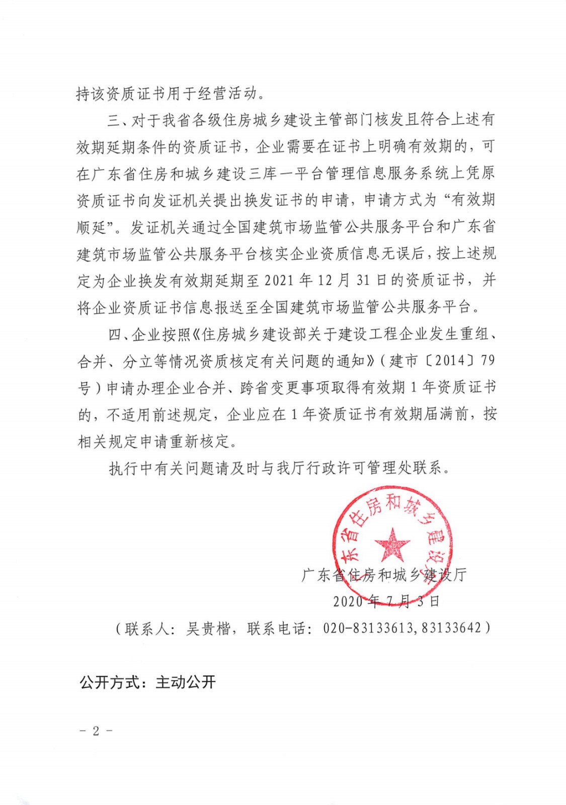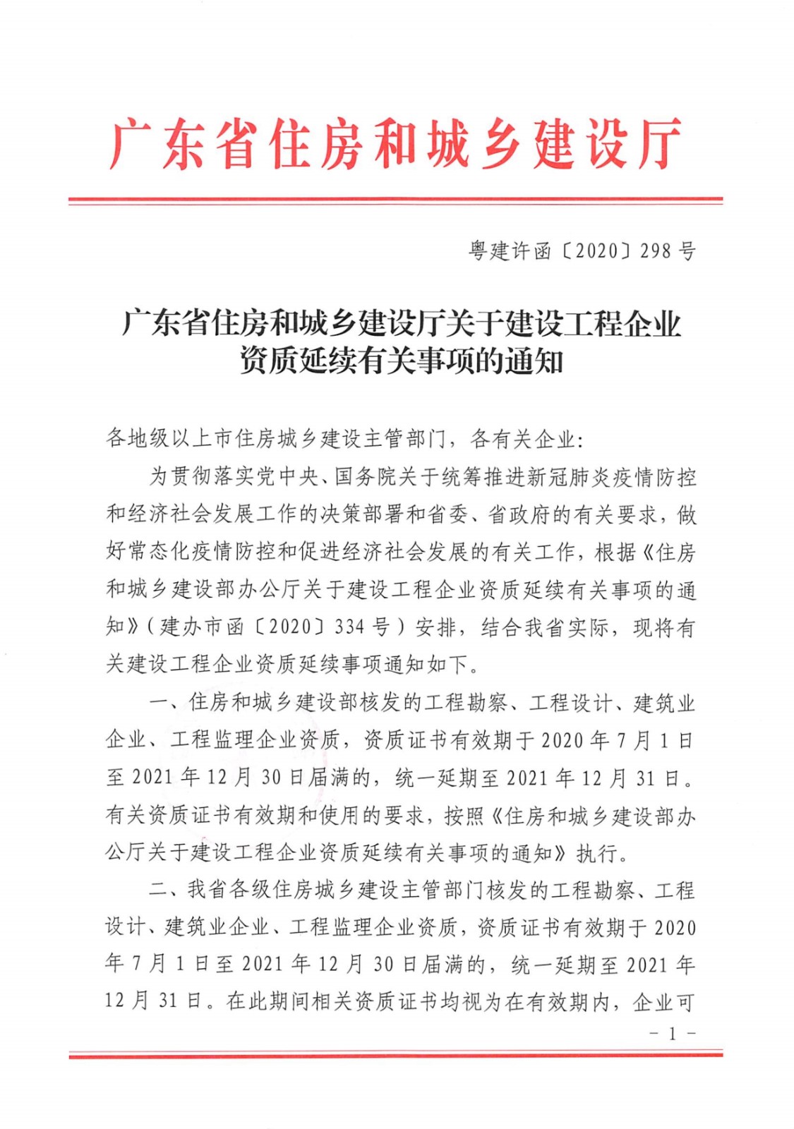 广东省住房和城乡建设厅关于建设工程企业资质延续有关事项的通知.pdf