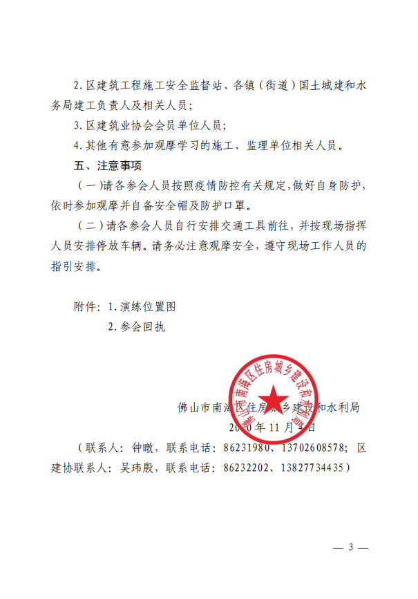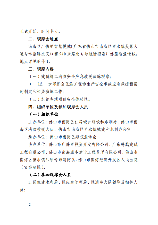 佛山市南海区住房城乡建设和水利局关于举办2020年南海区建筑施工消防安全应急救援演练观摩会的通知