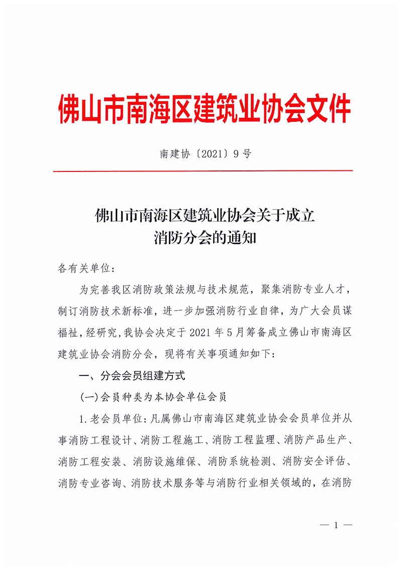 佛山市南海区建筑业协会关于成立消防分会的通知(南建协〔2021〕9号).pdf