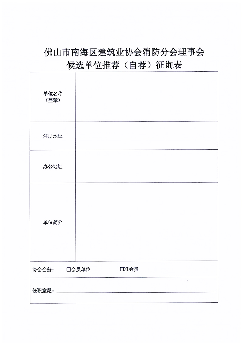 佛山市南海区建筑业协会消防分会理事会候选单位推荐(自荐)征询表.docx