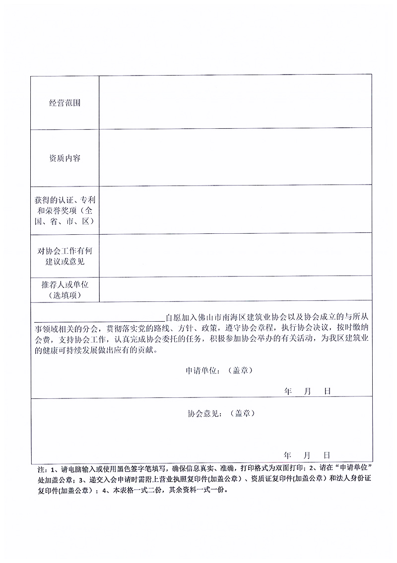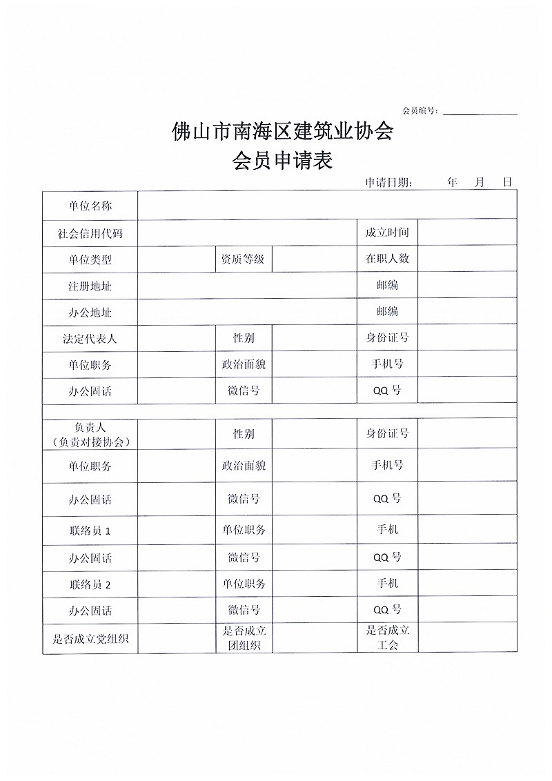 佛山市南海区建筑业协会会员申请表.docx