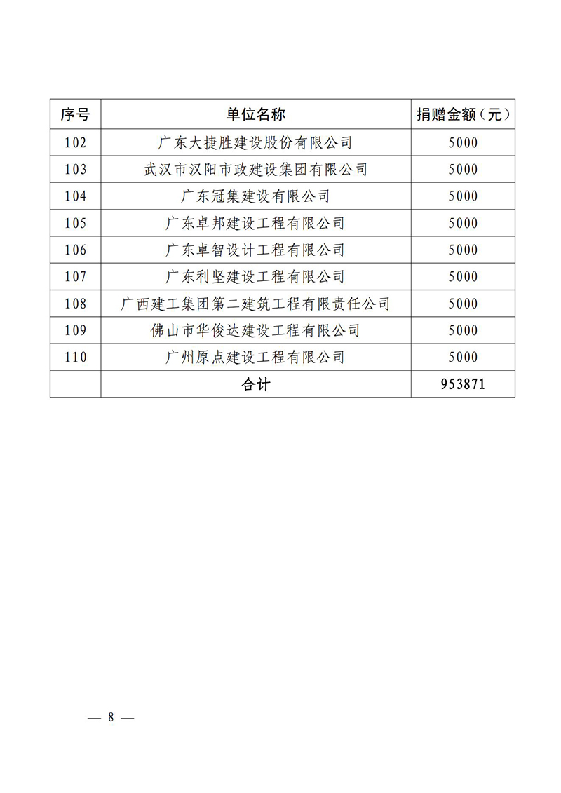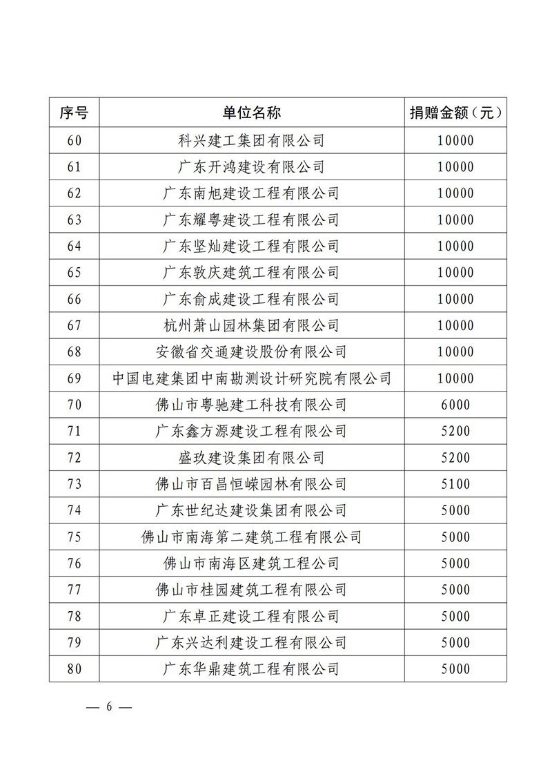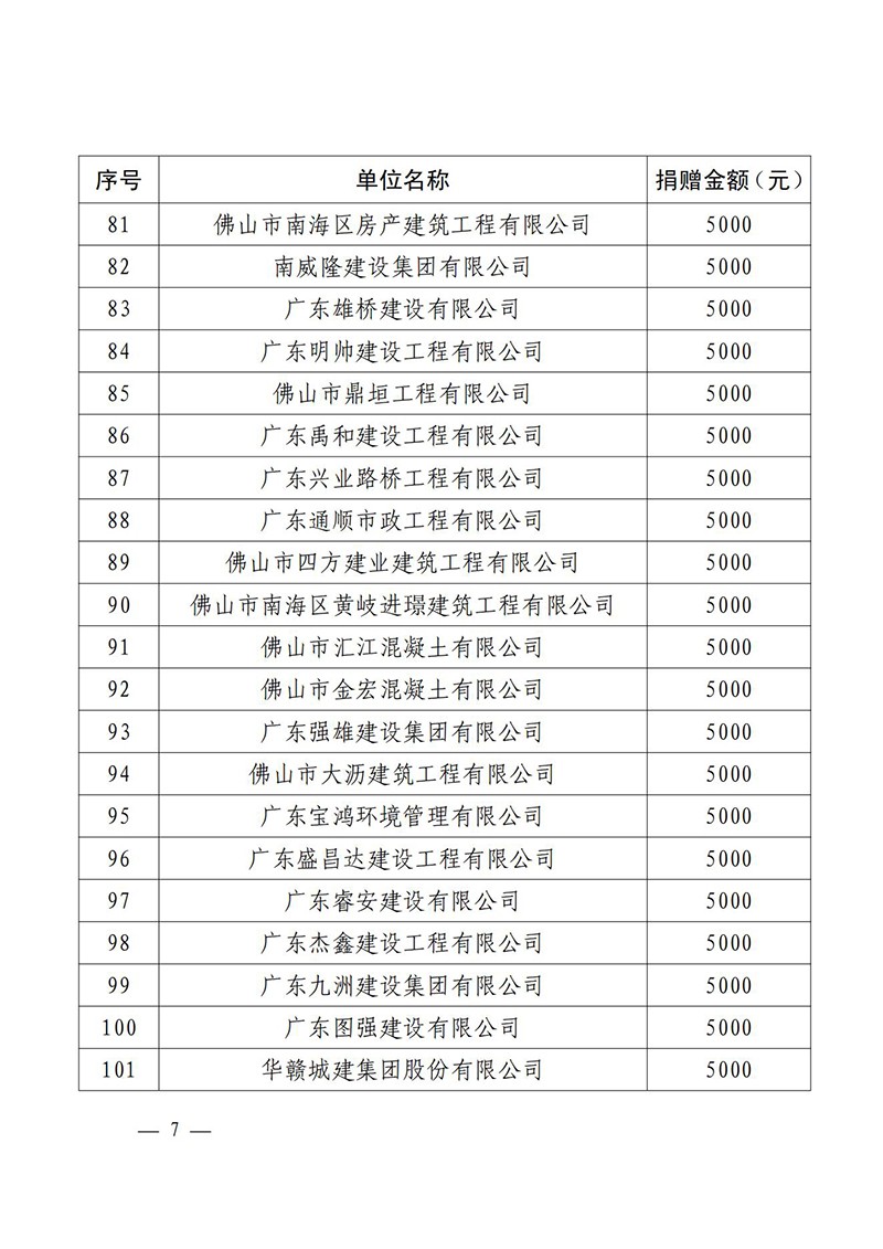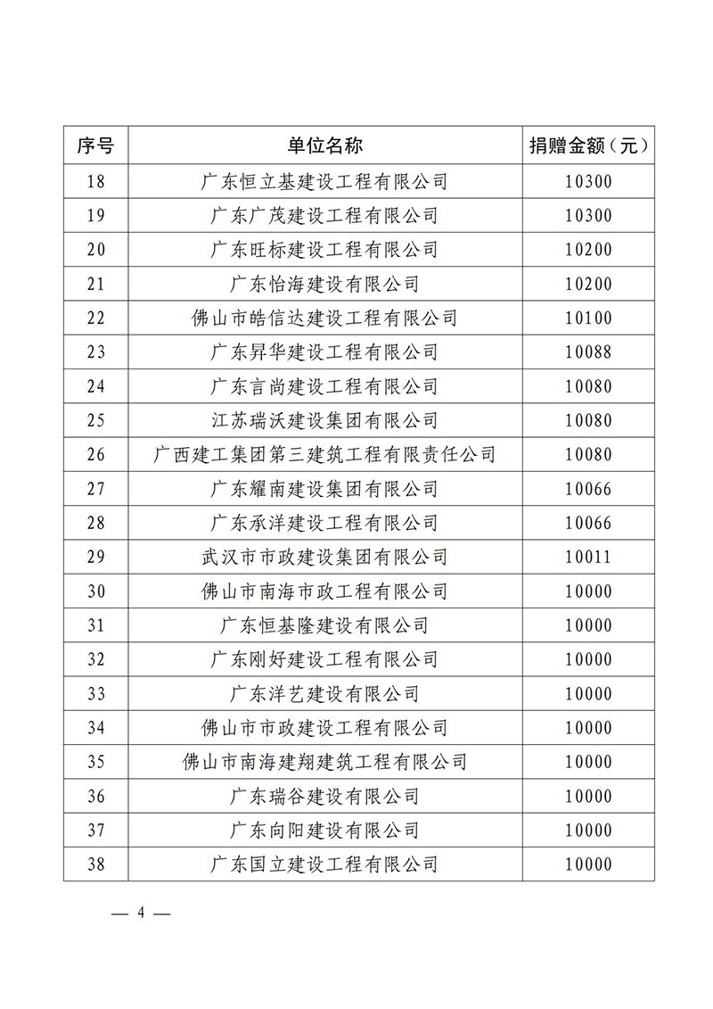 佛山市南海区住房城乡建设和水利局关于对参与肇庆市慈善帮扶活动捐赠企业的通报表扬