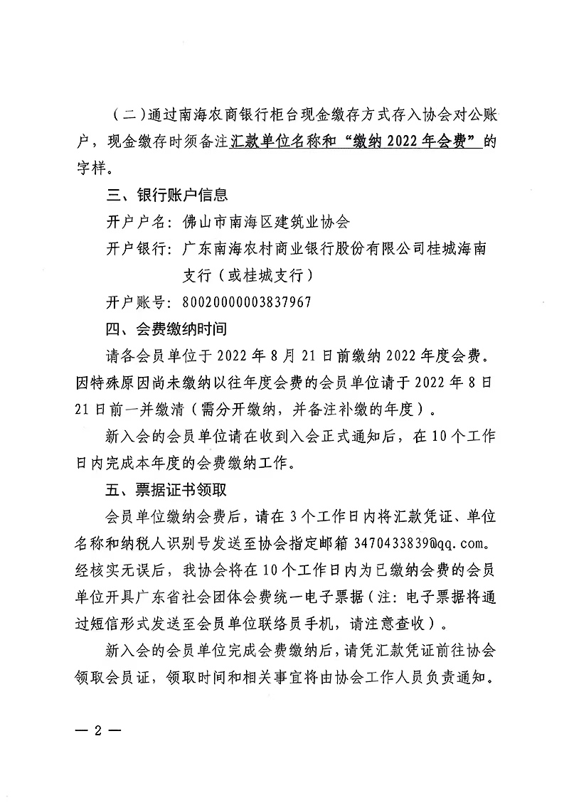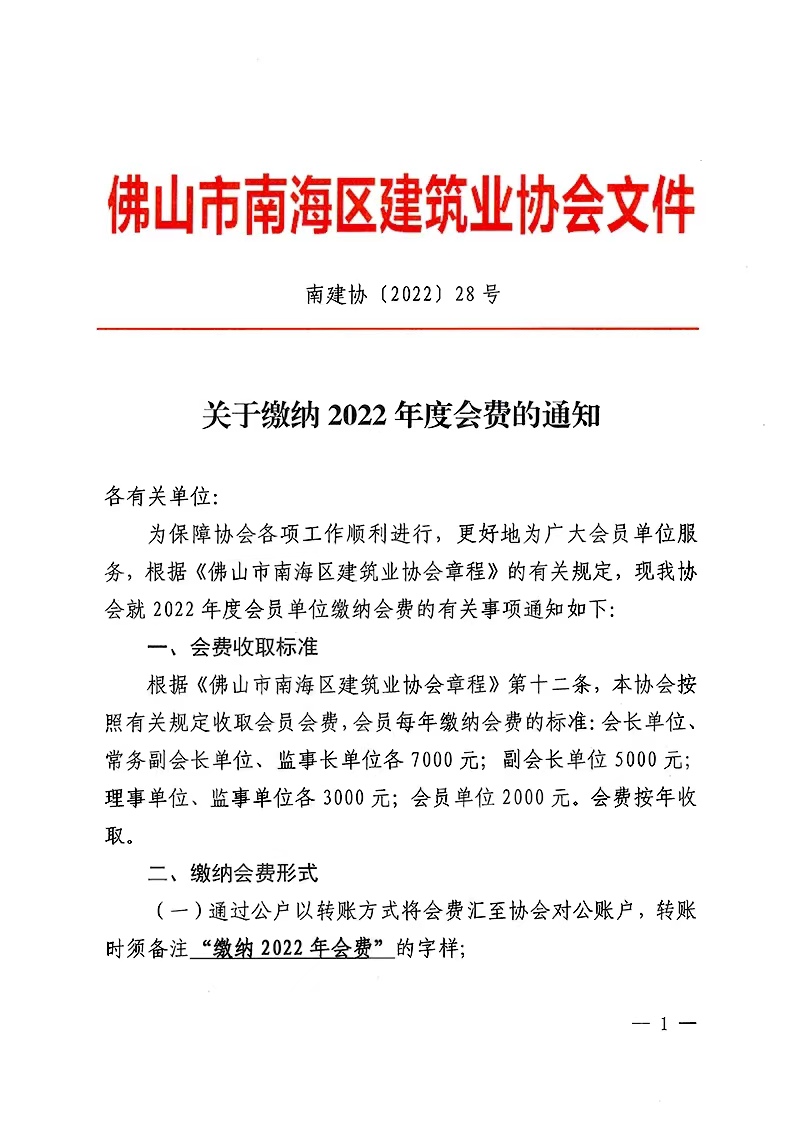关于缴纳2022年度会费的通知(南建协〔2022〕28号)