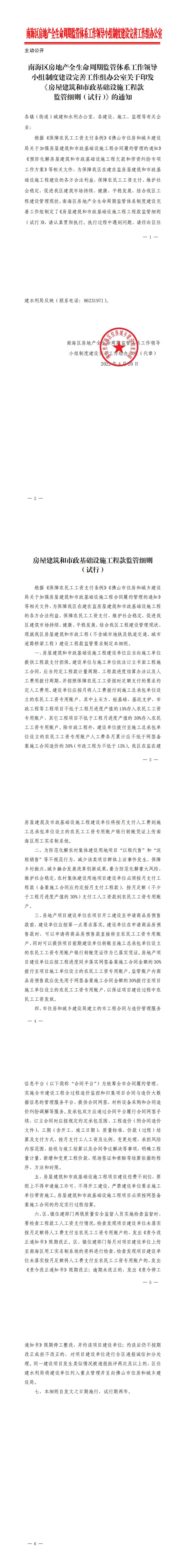 南海区房地产全生命周期监管体系工作领导小组制度建设完善工作组办公室关于印发《房屋建筑和市政基础设施工程款监管细则(试行)》的通知
