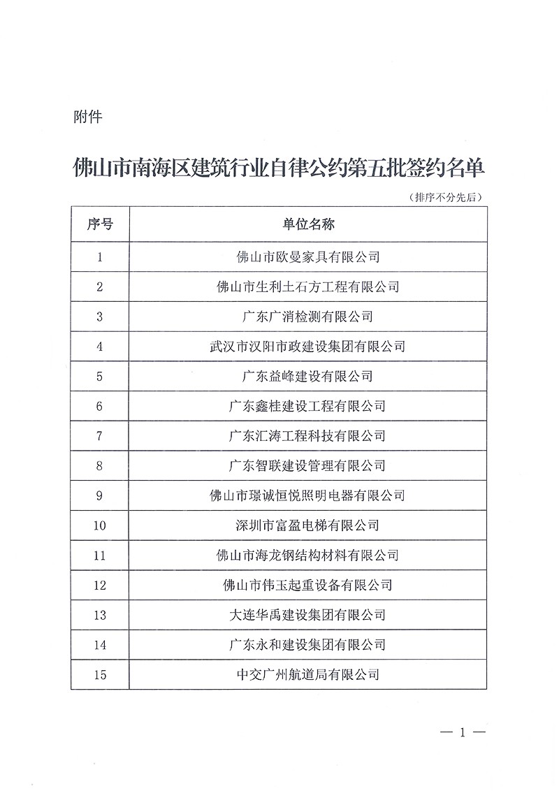 关于公布佛山市南海区建筑行业自律公约第五批签约名单的通知