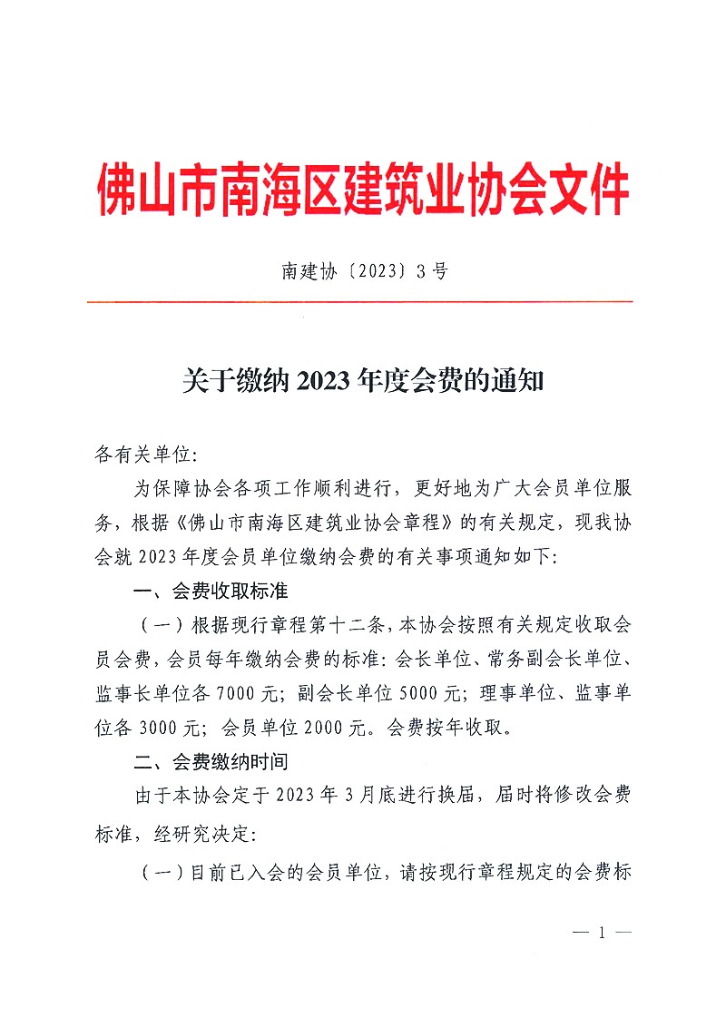 关于缴纳2023年度会费的通知(南建协〔2023〕3号)