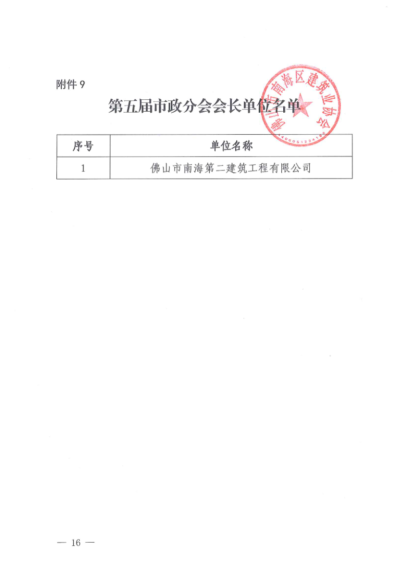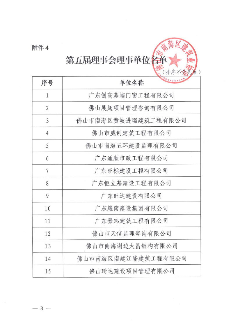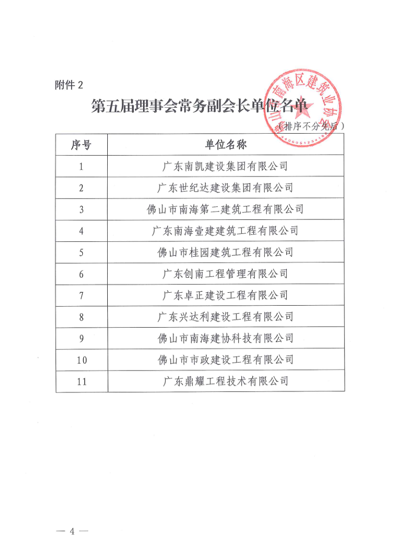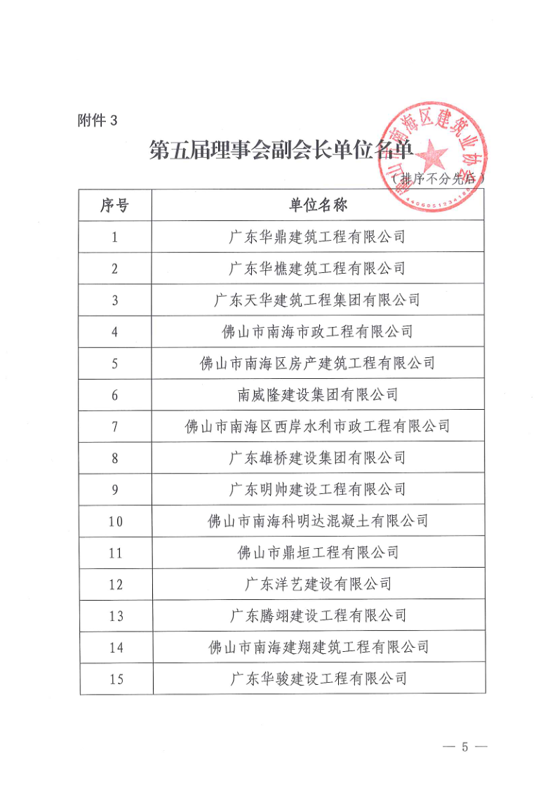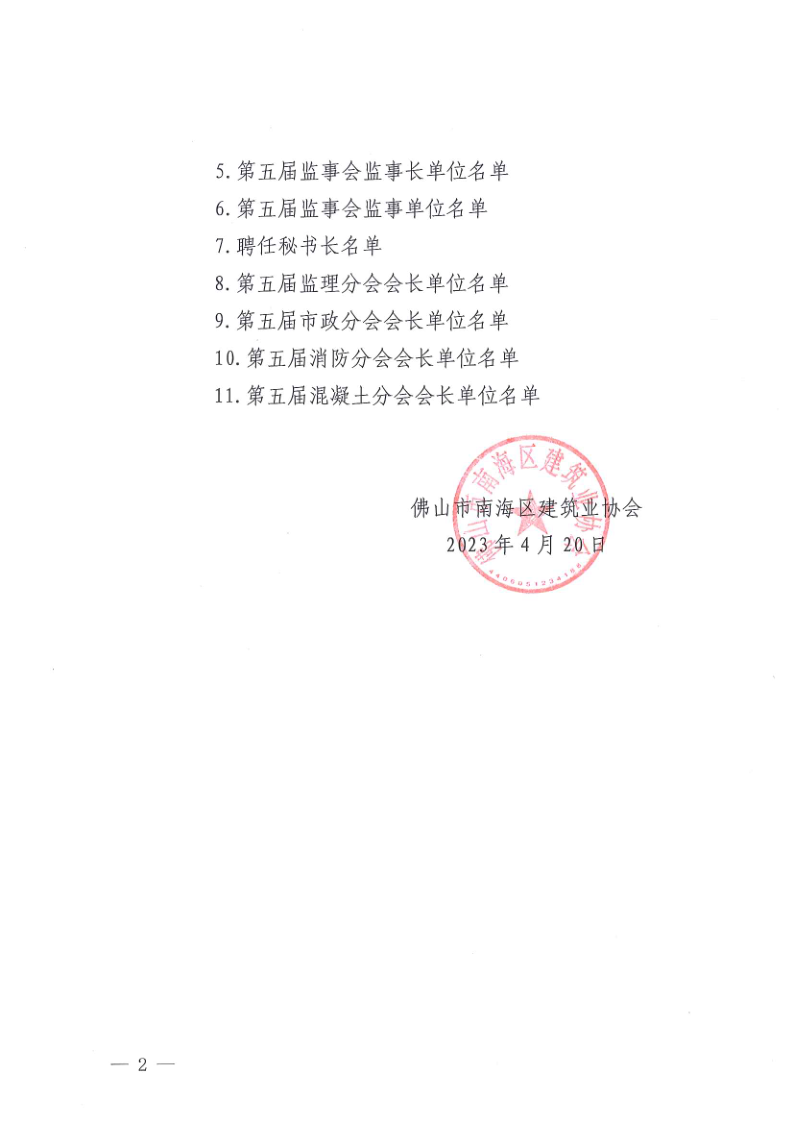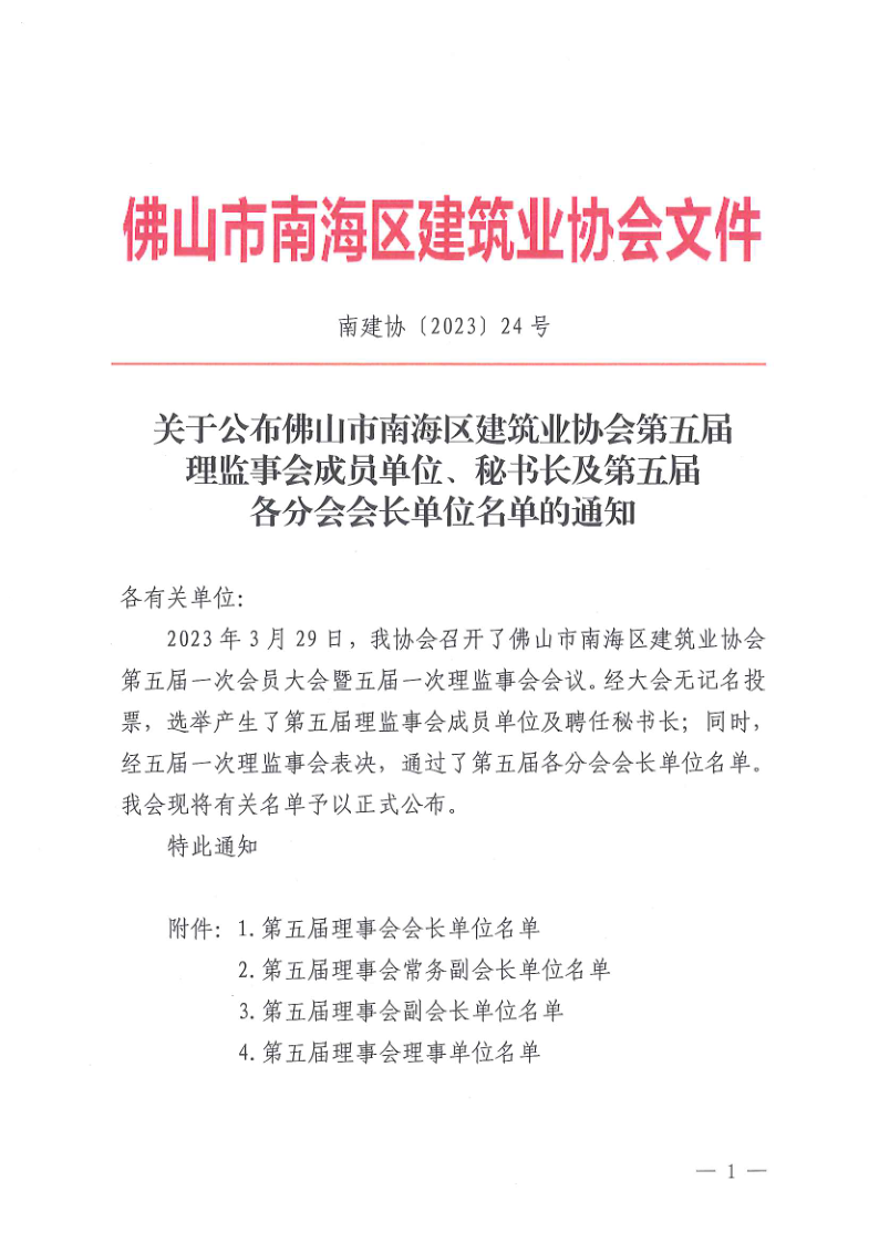 关于公布佛山市南海区建筑业协会第五届理监事会成员单位、秘书长及第五届各分会会长单位名单的通知(南建协〔2023〕24号)