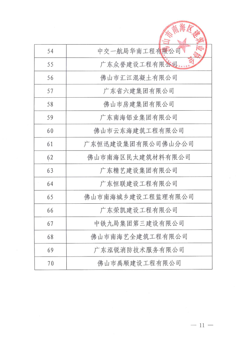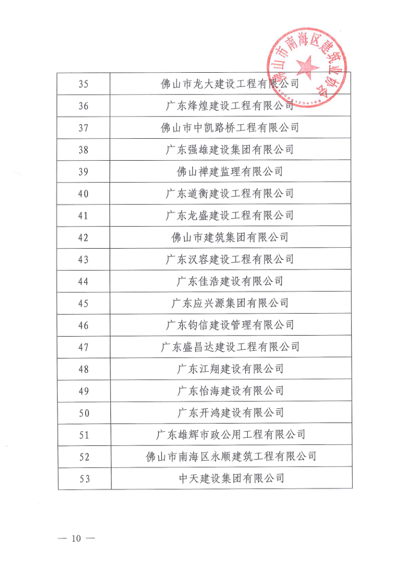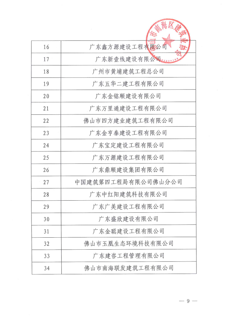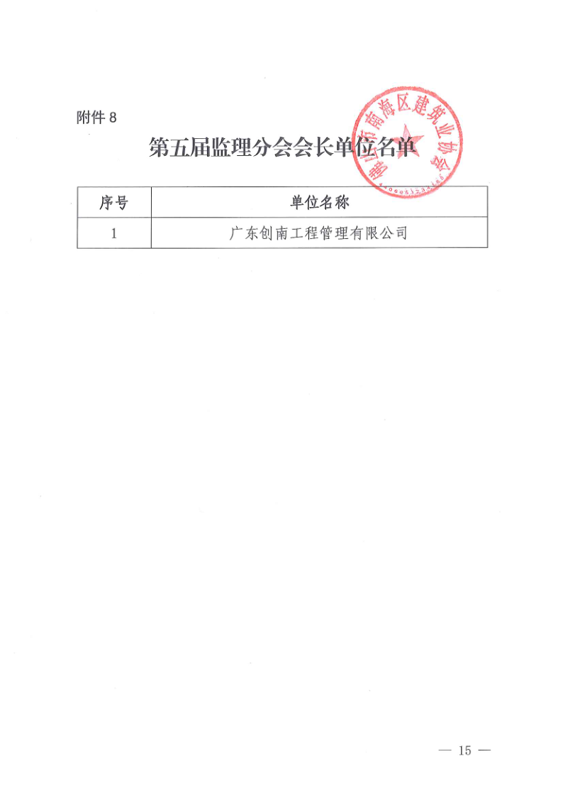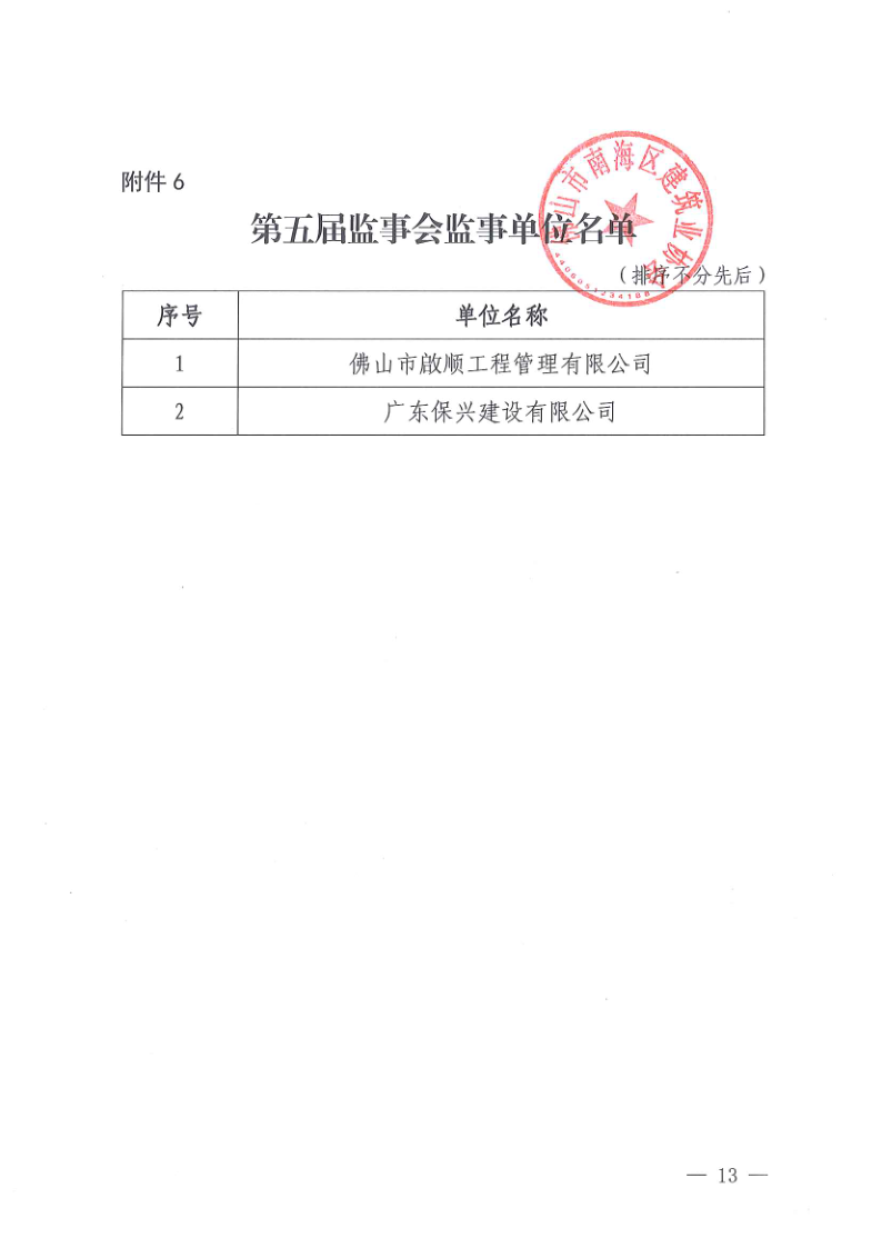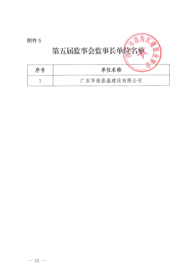 关于公布佛山市南海区建筑业协会第五届理监事会成员单位、秘书长及第五届各分会会长单位名单的通知(南建协〔2023〕24号)