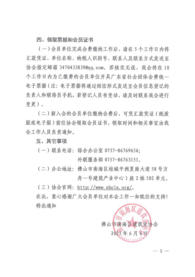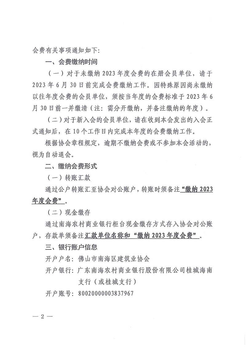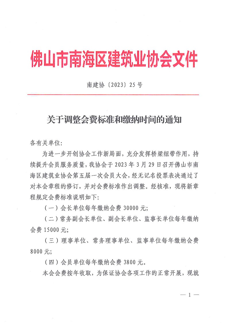 关于调整会费标准和缴纳时间的通知(南建协〔2023〕25号)