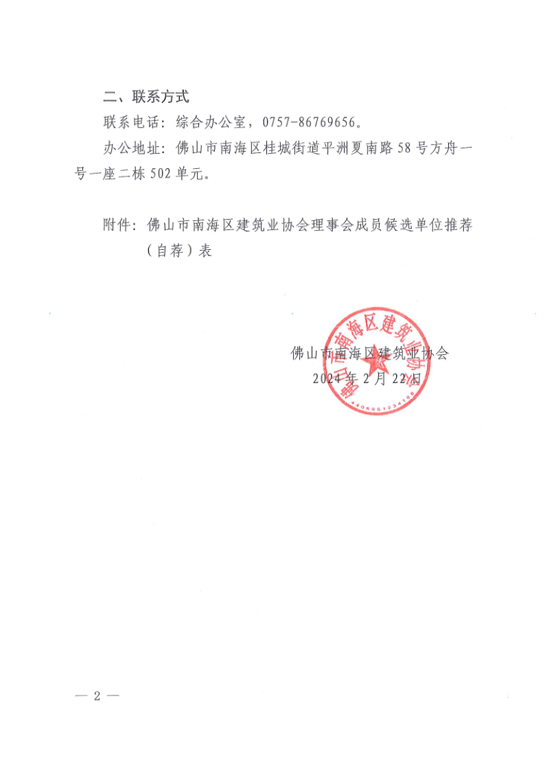 关于征询佛山市南海区建筑业协会理事会成员单位任职意向的通知(南建协〔2024〕4号)
