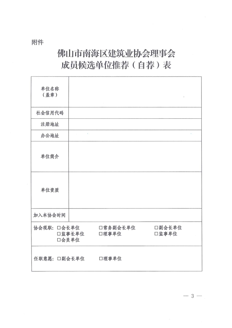 附件:佛山市南海区建筑业协会理事会成员候选单位推荐(自荐)表.docx