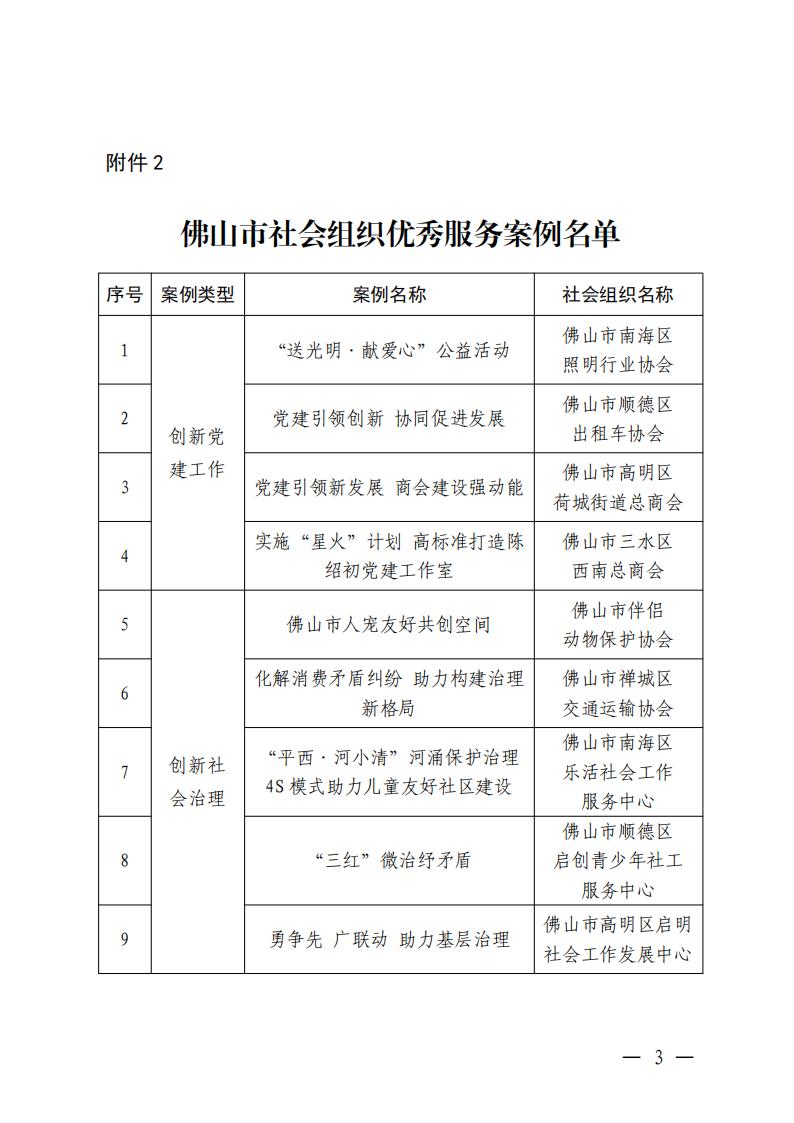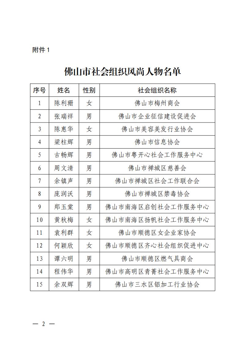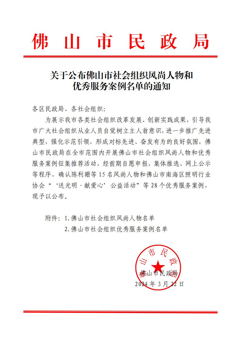 关于公布佛山市社会组织风尚人物和优秀服务案例名单的通知