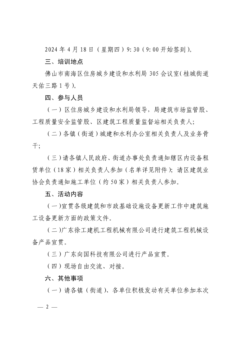 佛山市南海区住房城乡建设和水利局关于举办南海区建筑和市政基础设施设备更新政策宣贯暨建筑施工设备更新交流对接会的通知.pdf